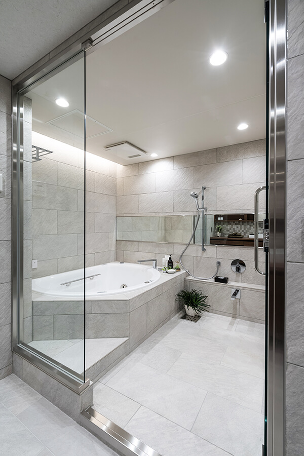 外国人VIPの邸宅として根強い人気を誇る高級マンション、老朽化した設備や間仕切りを全て取り除き、スケルトンリノベーションを実施しました。 規約で禁止されている二重床を用いずに、水回りの配置を工夫することで、浴室除きフルフラットを実現しました。| 築年月 | 1972年 |