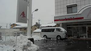 (駐車場左隅の雪の量を見れば雪の多さがわかるでしょ!?)