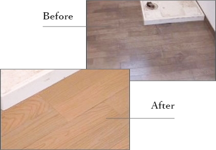 フローリングの補修は小さい傷から、腐食等で損傷の激しいものまで補修します。特に水廻りは傷みがちです。補修をし、着色を施し、自然な風合いを作り、木目も再現します。